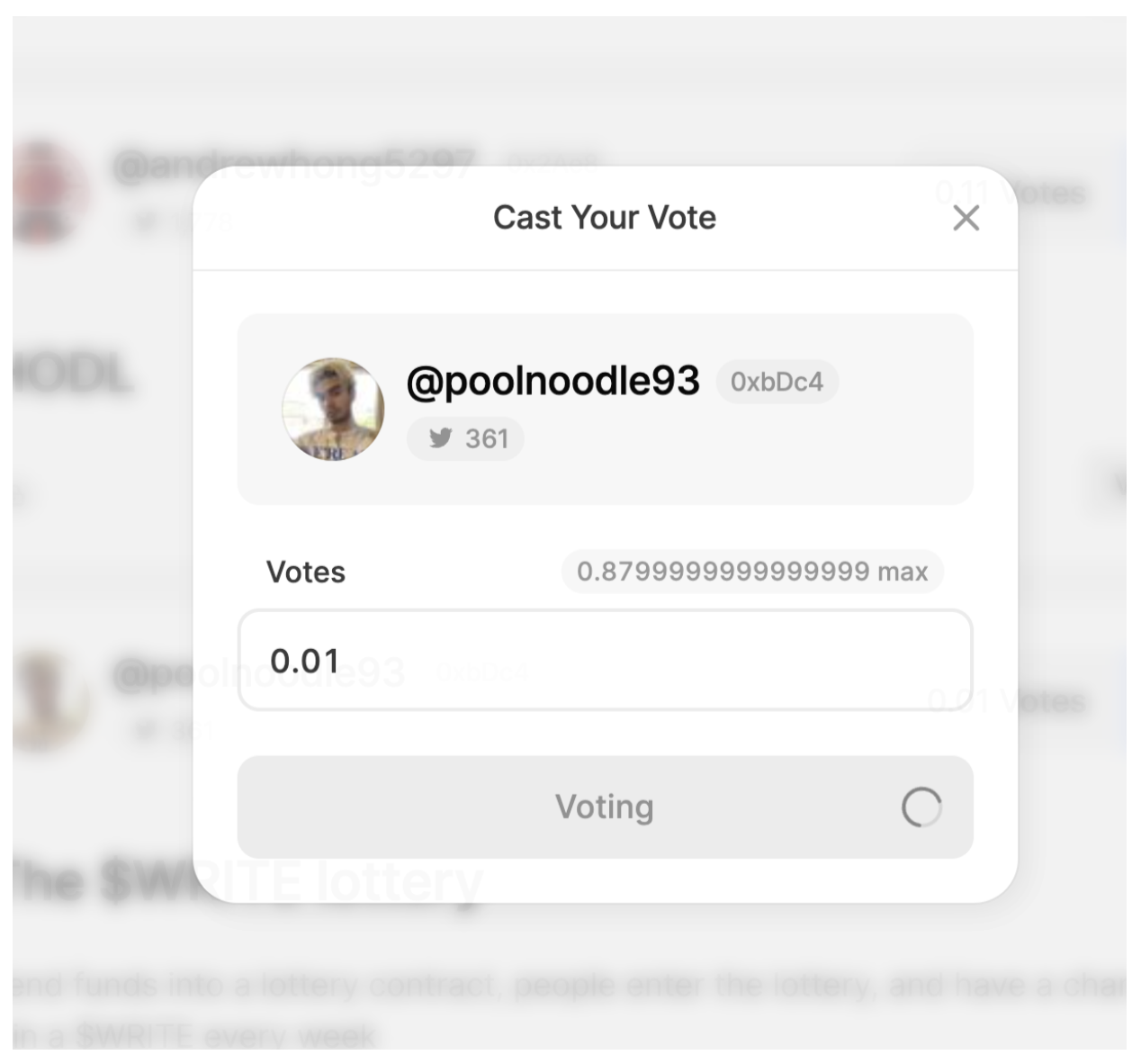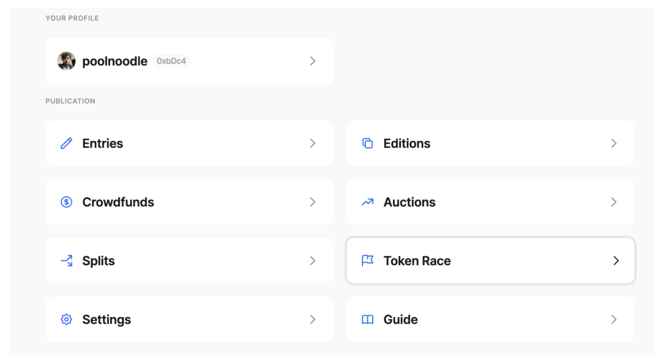 Mirror 支持创建 Token Race,这是我们自己的$WRITE Race 的衍生品。代币竞赛是一个简单的基于期限的治理工具,允许你上传提案,并允许你的社区根据他们在某个时间点持有的特定 ERC20 代币或 ERC721 代币(NFT)进行投票。