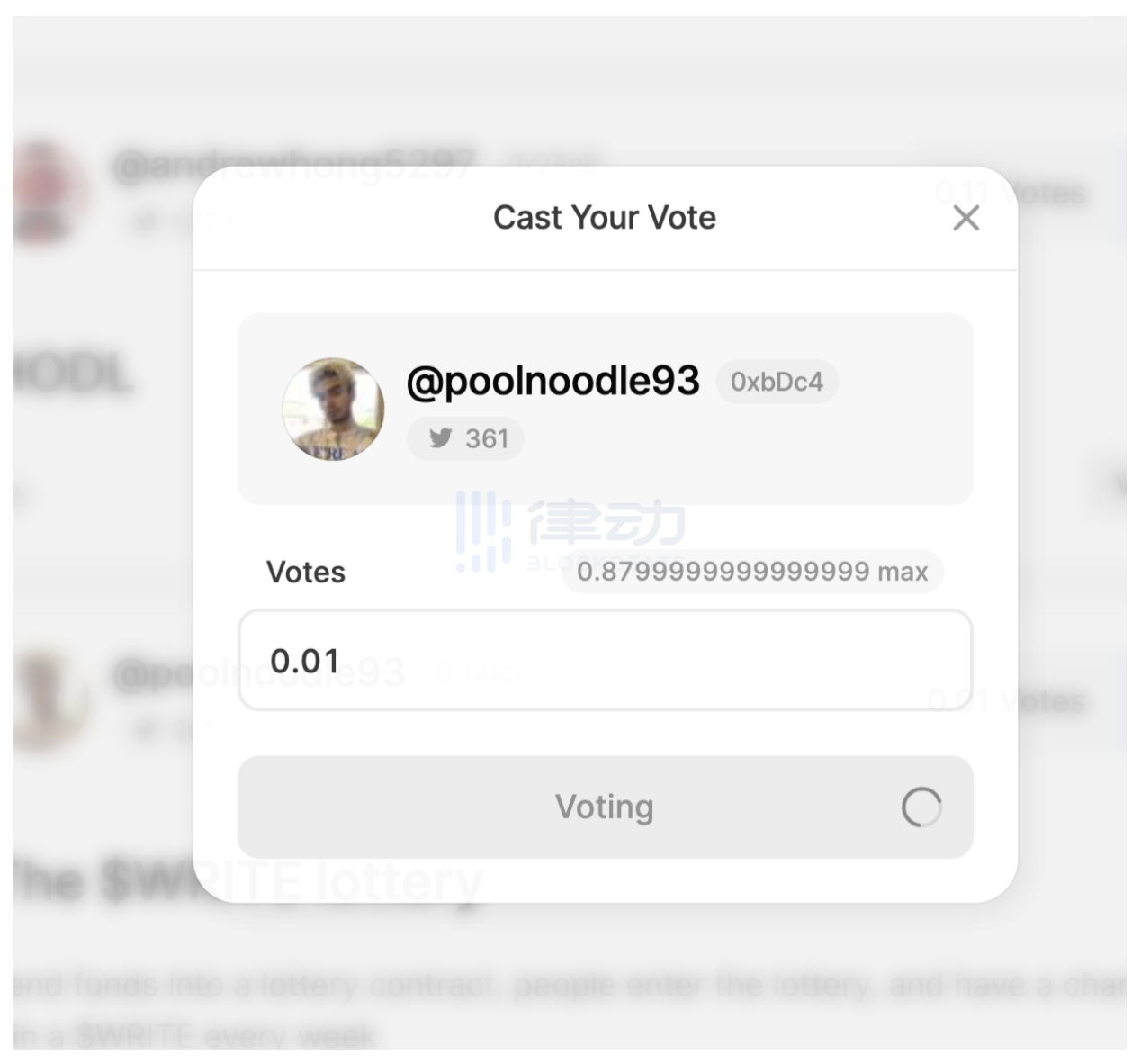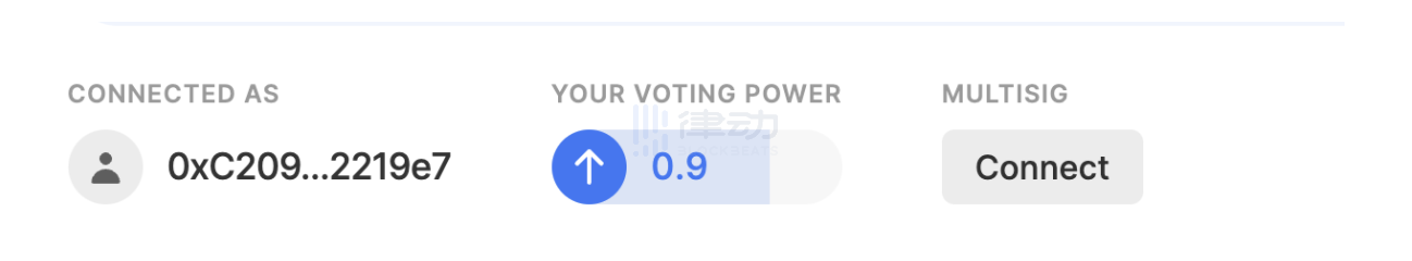 投票者连接他们的钱包,显示他们当前的投票权。投票权是由 ERC20 代币的余额决定的。