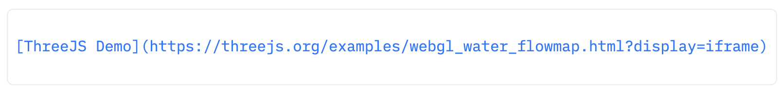 可以通过创建一个 iFrame 块来插入任何页面。例如,只需将 display=iframe 作为一个查询参数,你就可以插入交互式 WebGL 内容。