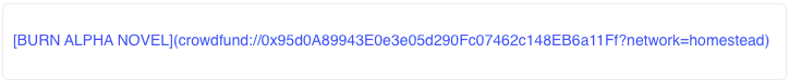 发起一个众筹并部署它。部署后,一个代码片段将出现在插入众筹的部分。将其复制并粘贴到一篇文章中。它应该看起来像下面的例子,不过地址是你的。