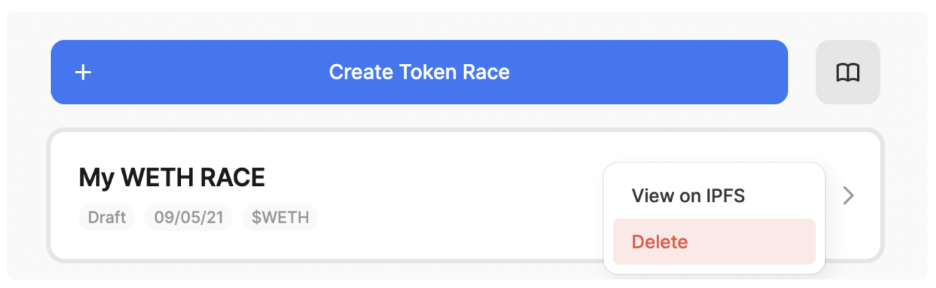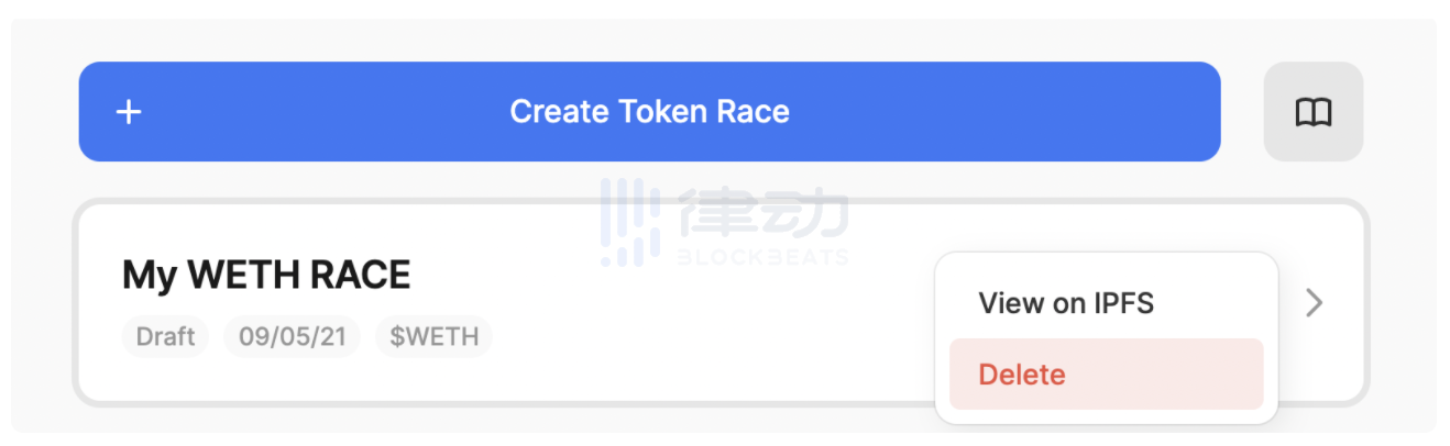 你可以在 token race 上线前从导航页上删除它。你只能在 token race 开始前删除。你不能删除已经结束的 token race。删除一个 token race 会将其从 Mirror UI 中删除,但数据将继续存在于 IPFS 上。