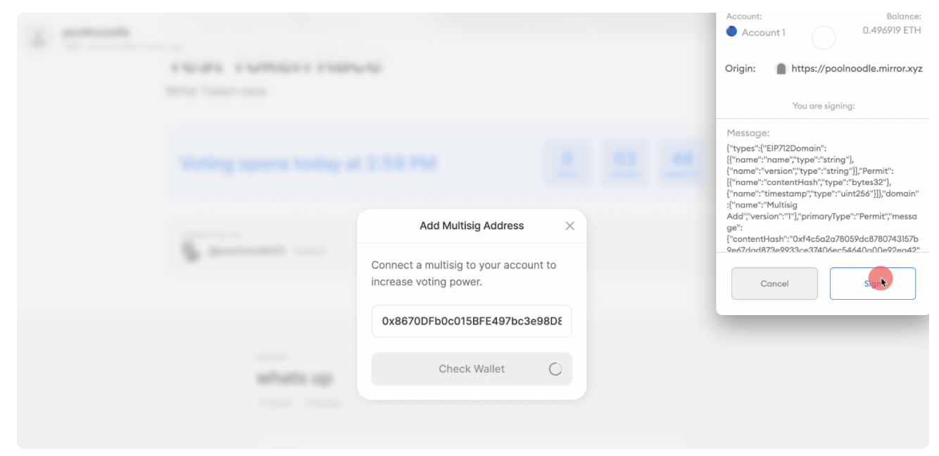 Token Race 支持代表多签账户投票,而不要求多签持有人使用多签投票。为了代表一个多签投票,请将你的多签地址添加到 Token Race 页面。一旦它被验证,你就可以代表多签投票。