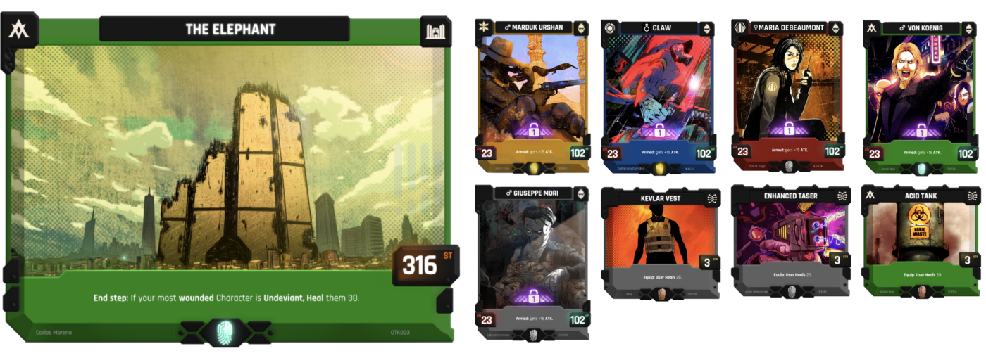Deviants' Factions 是 Terra 上一款在线集换式 NFT 卡牌游戏,玩家在游戏中可分为 4 个派系,每个派系通过自己独特的策略来赢得战斗。游戏中,玩家需要用一张总部卡牌和其他 8 张角色或技术卡片,来摧毁对手的总部,同时保卫自己的总部,总部被摧毁的玩家将输掉游戏。