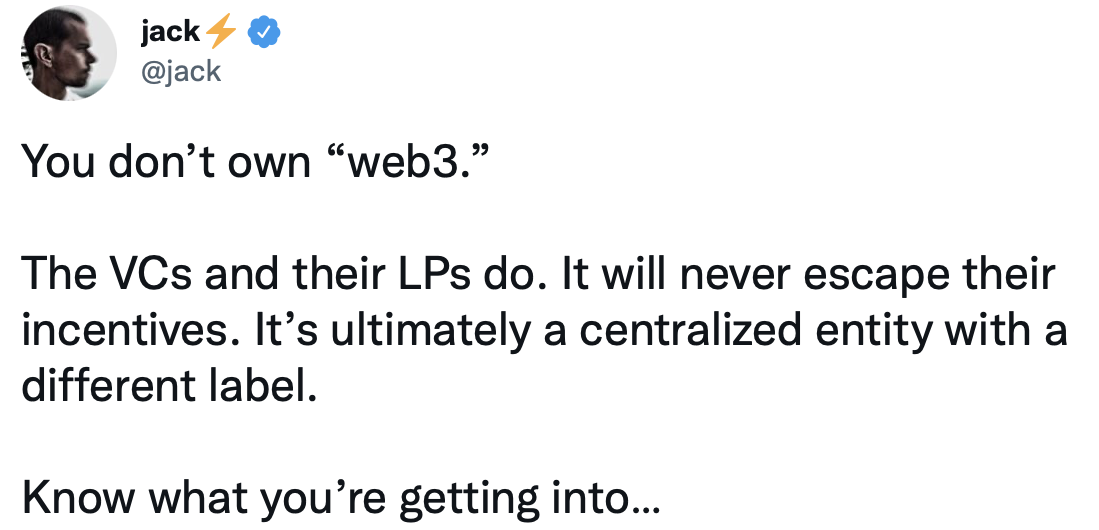 律动译者在撰文时恰好看到了来自 Jack Dorsey(前推特 CEO)的类似观点
