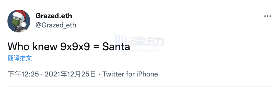 也有人把网传是 OpenDAO 团队成员的核心贡献者、著名藏家 9x9x9 戏称为「圣诞老人」。