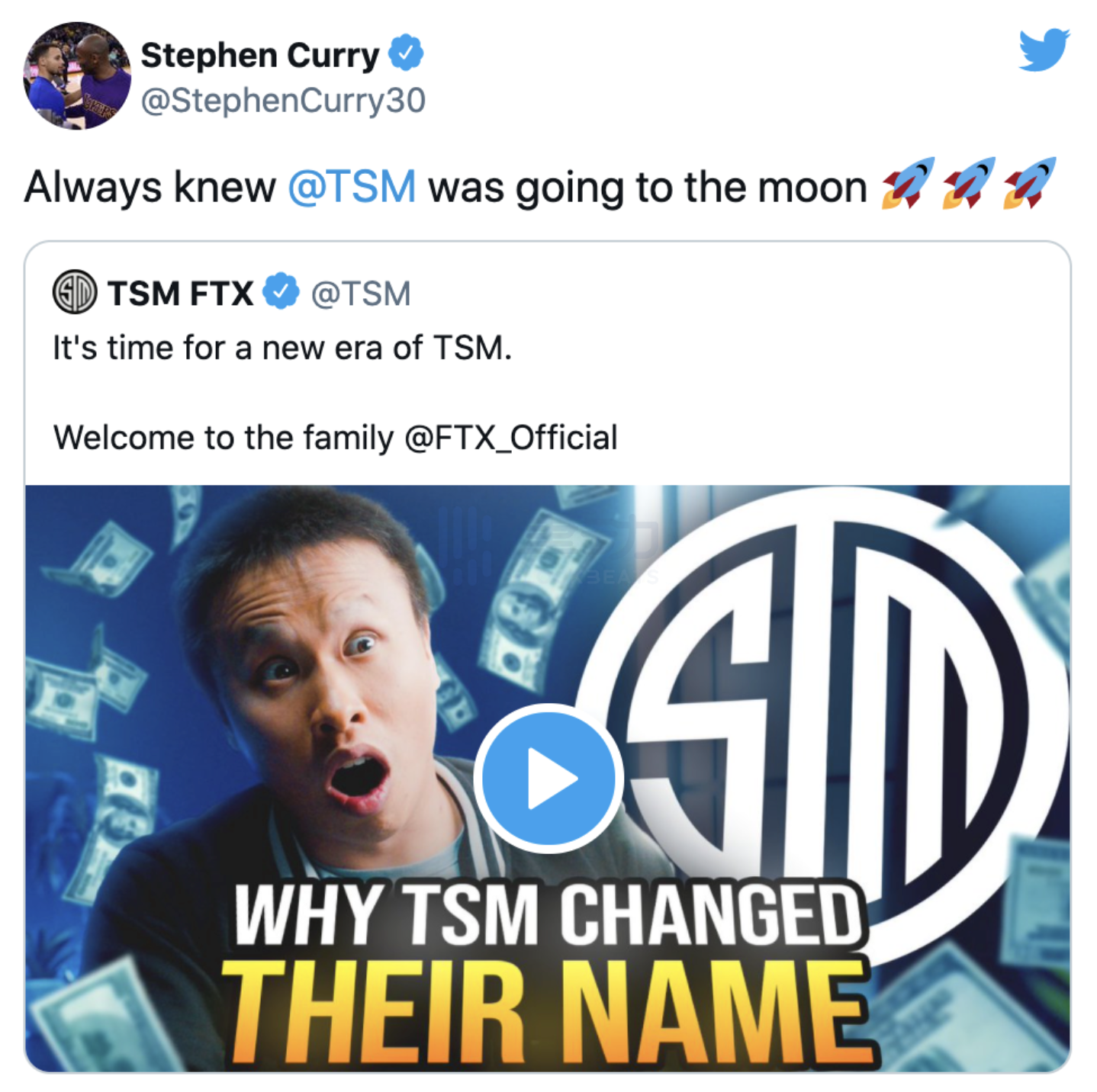 值得一提的是,在 TSM 的股东名单中赫然列着 NBA 巨星斯蒂芬·库里的名字。在签约拍板后,库里转发了相关推特,这也埋下了一个伏笔。