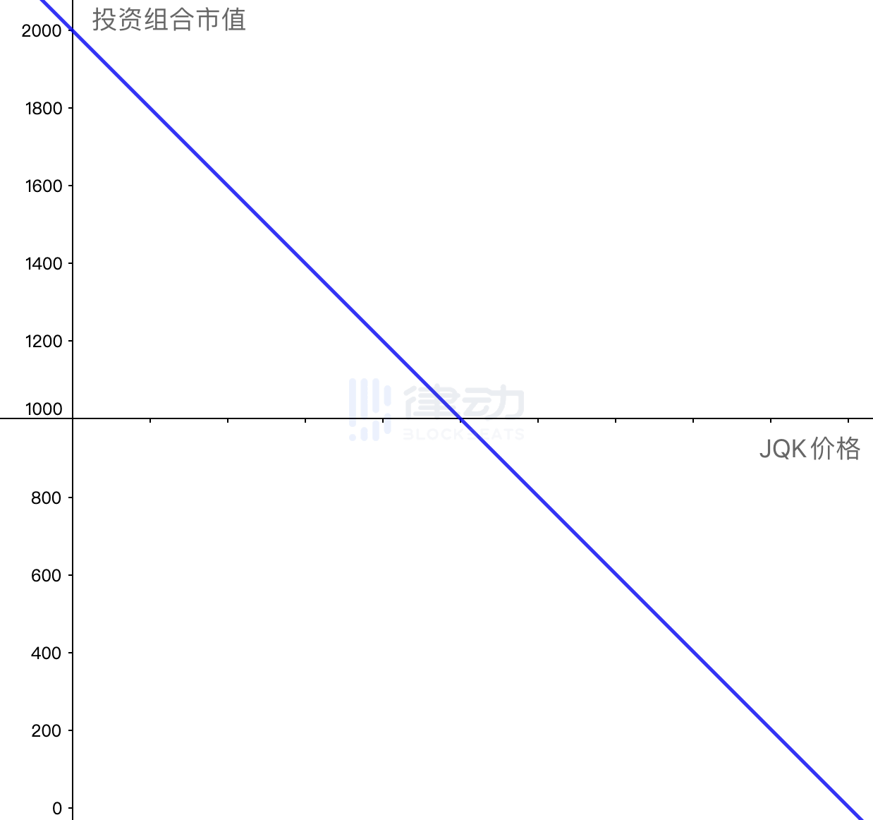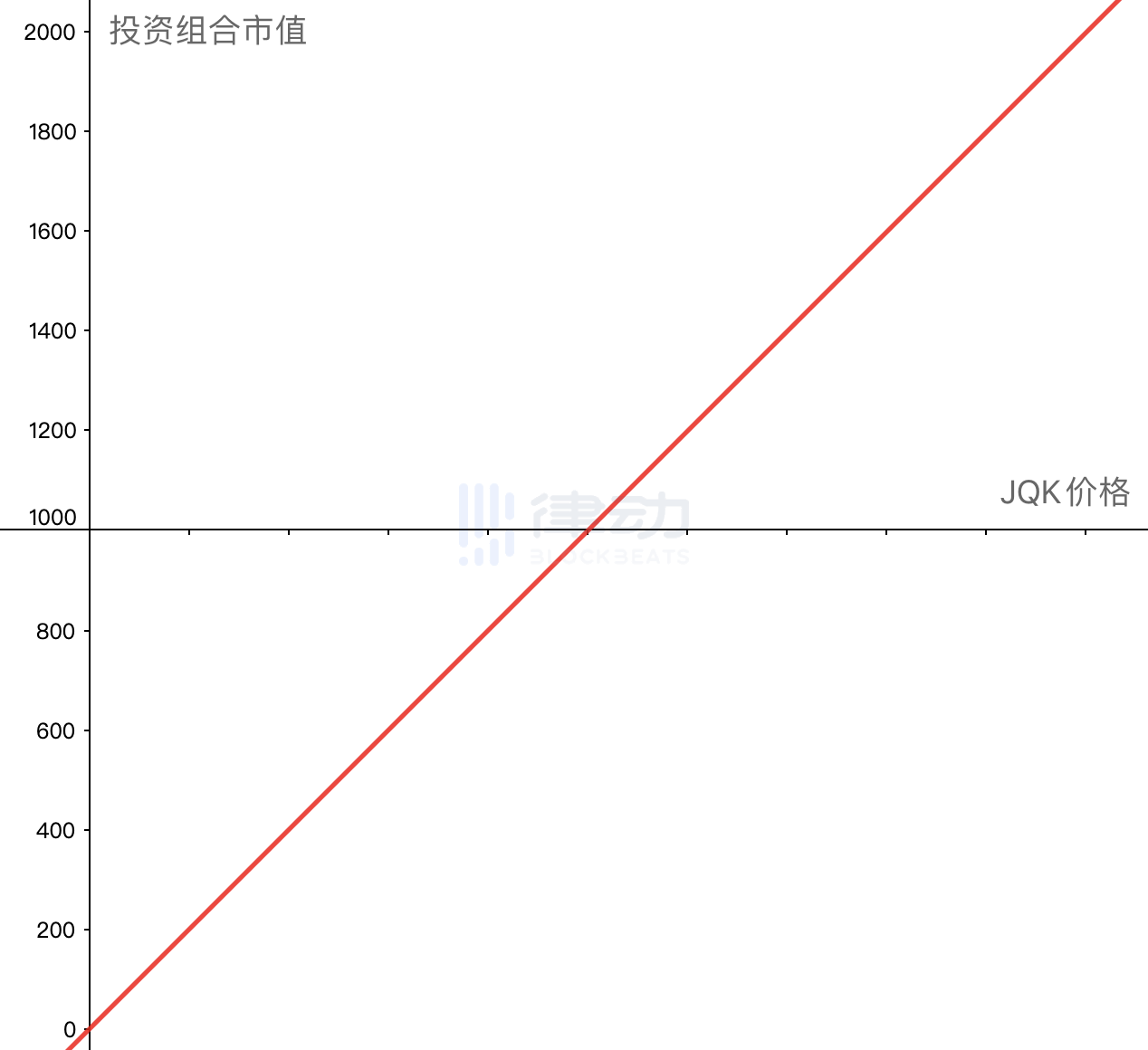 如果把你这时持仓的全部资产的市值作为纵轴,JQK 的价格作为横轴,我们将得到你投资组合的市值曲线。
