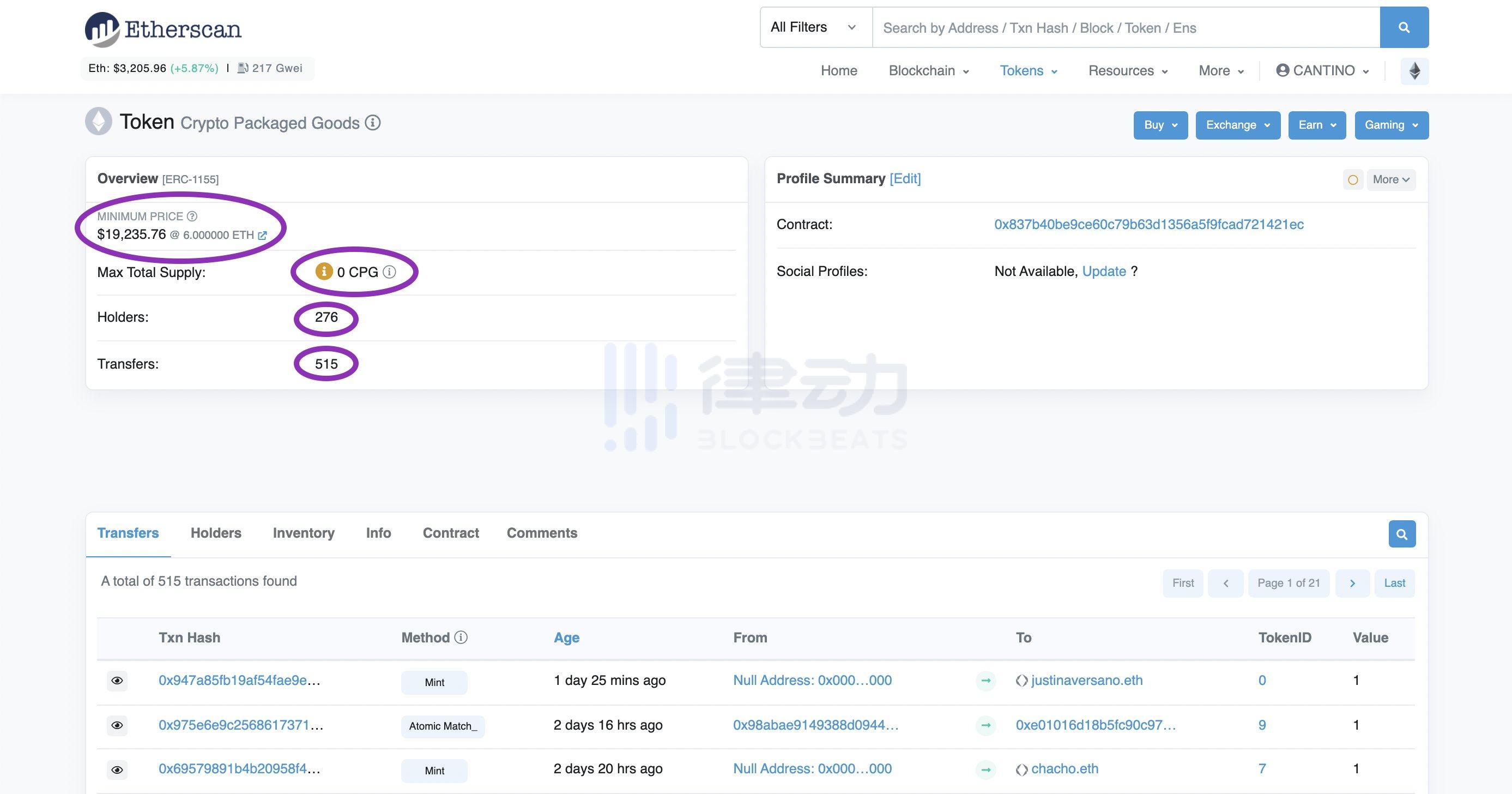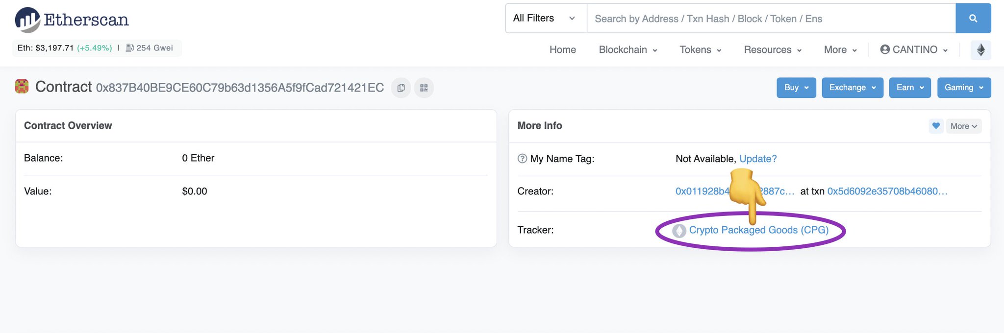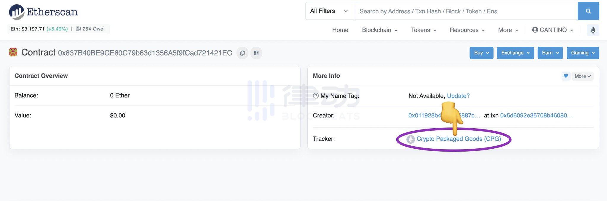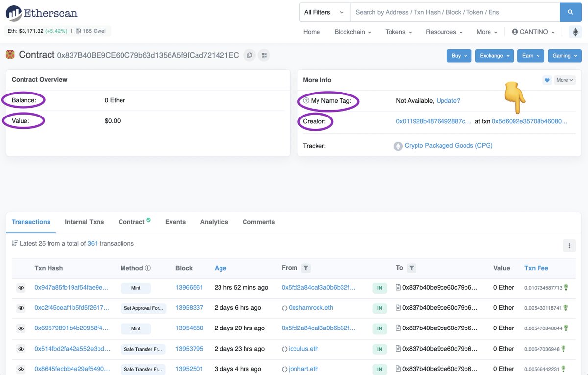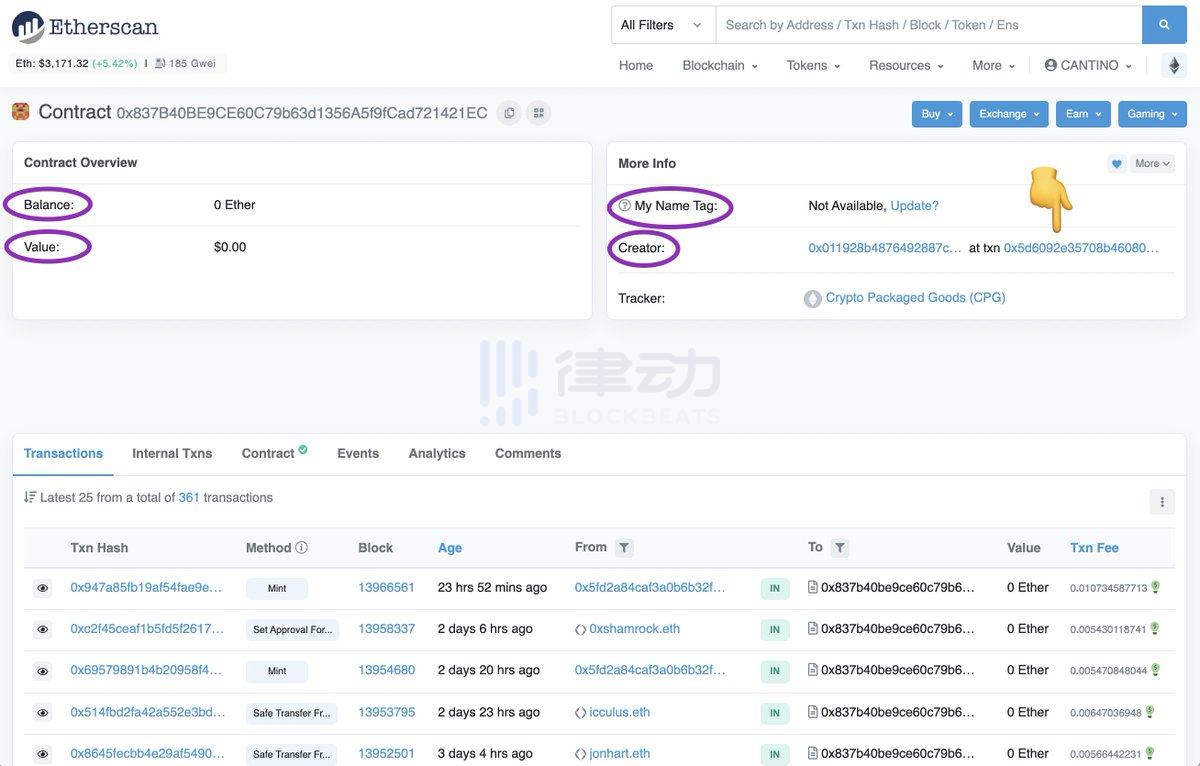 3.「Creator」:这里显示创建合约的钱包,以及原始交易的链接。让我们点击它。