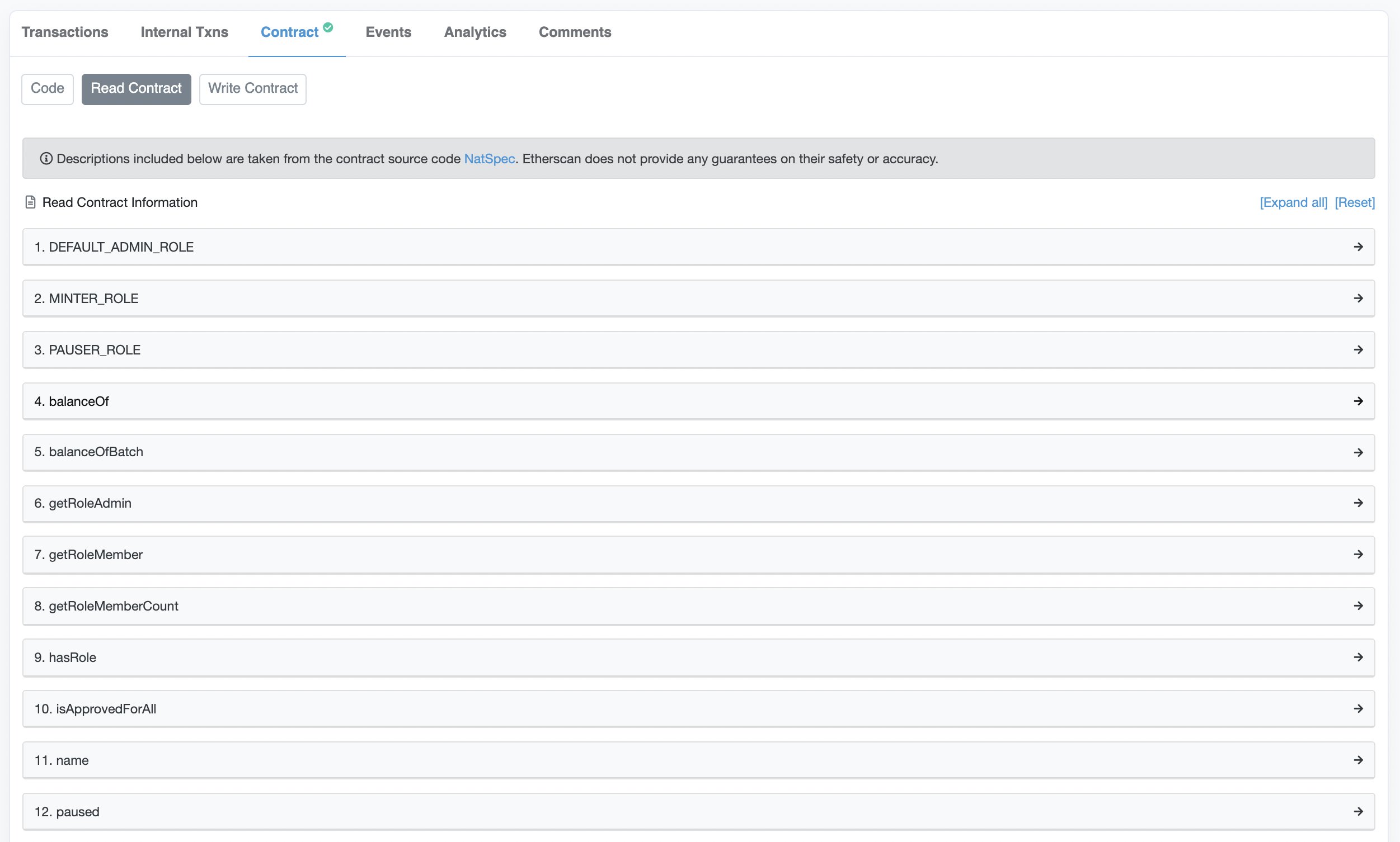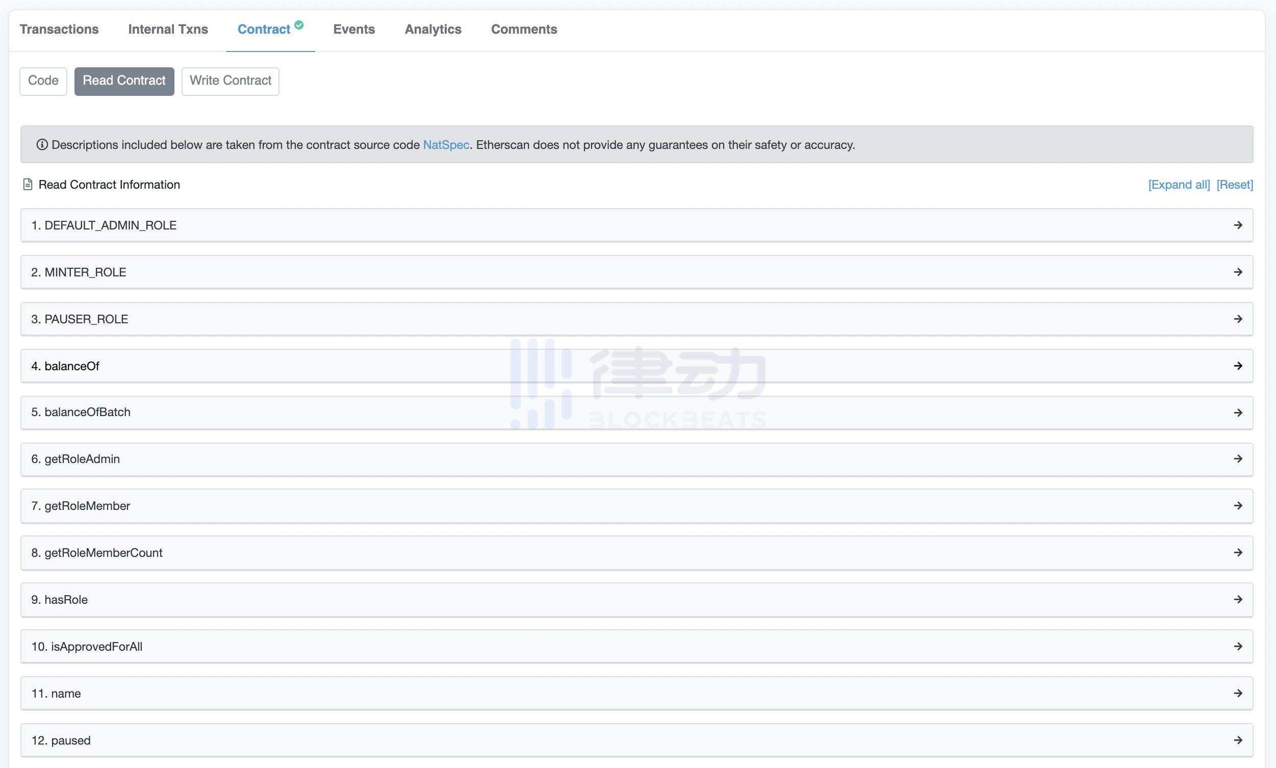 接下来是「Method」,这些是通过合约执行的功能。每个合约都是不同的,但常见的方法包括铸币、转账和批准设置。