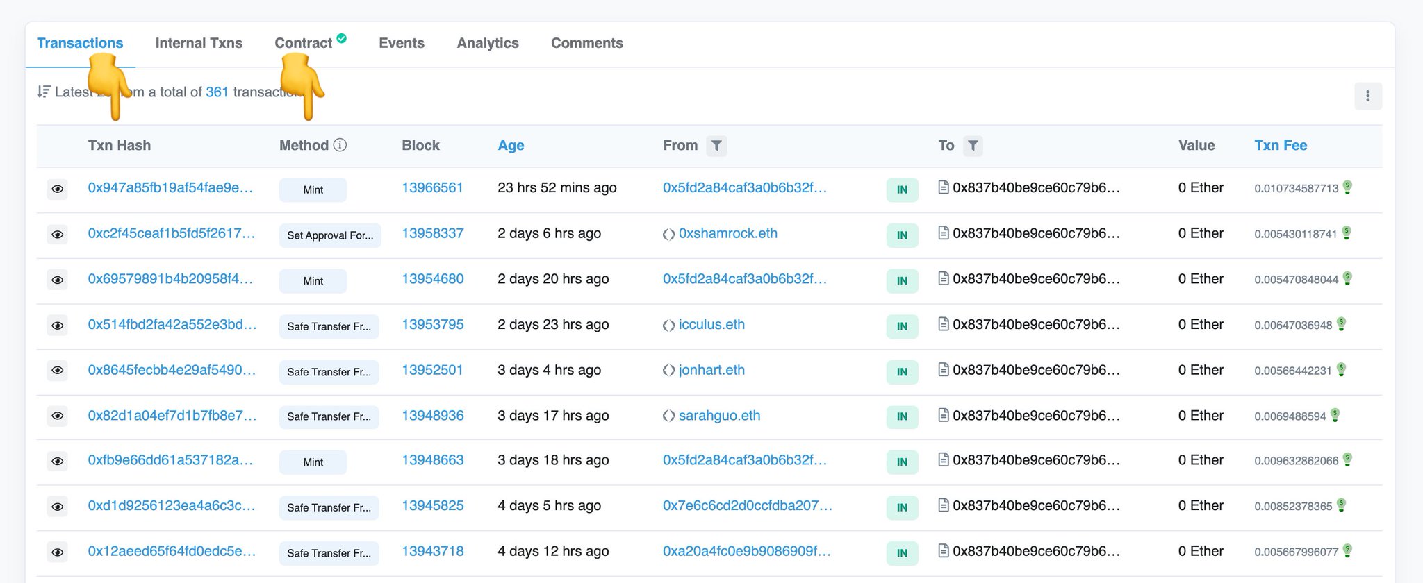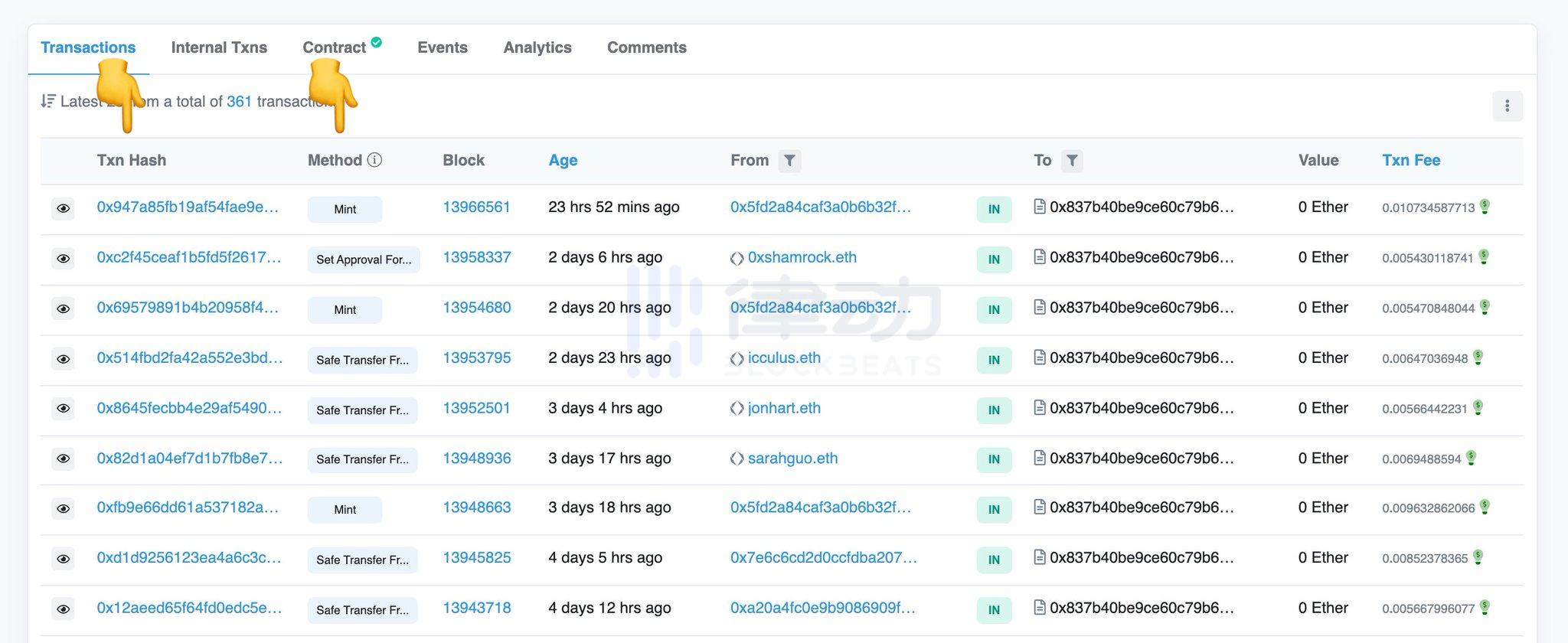 OK,回到主合约页面。让我们深入了解一下「Transactions」选项卡。