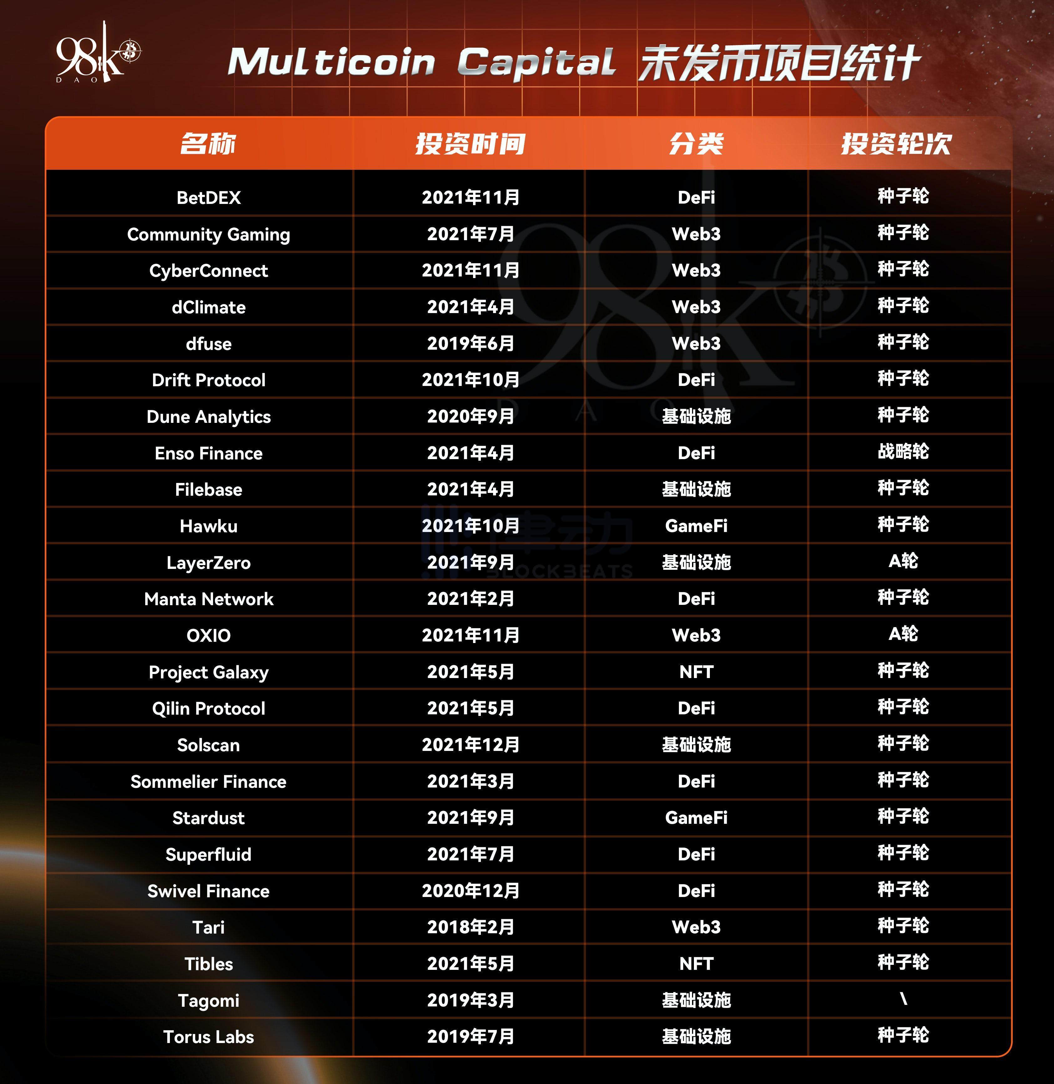 以下统计为 Multicoin Capital 已投资但未发币项目: