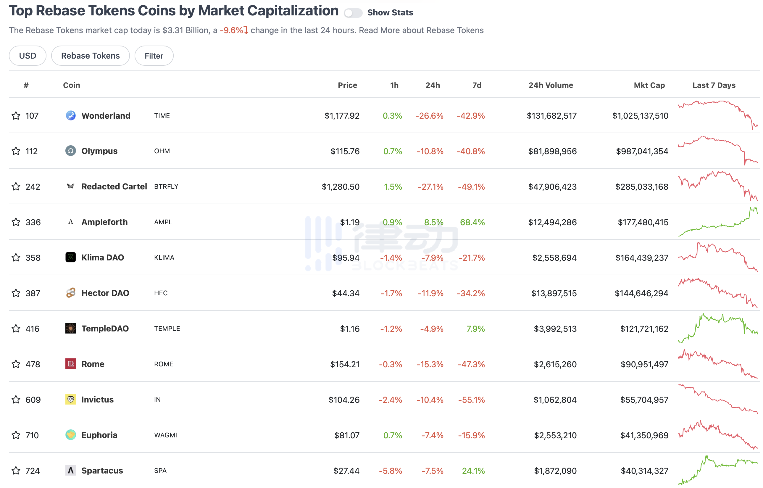 而作为 DeFi 2.0 中数一数二的龙头项目,OHM 的暴跌也在整个 DeFi 2.0 生态中产生了涟漪效应,很多市值更小的项目受到了极大的冲击,确实可以说是惨不忍睹。