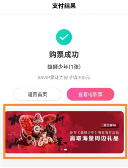 4、电影购后页面,路径:用户购票后页面领取礼品的地方,也可能出现数字藏品的淘票票购后页面 banner 示意图
