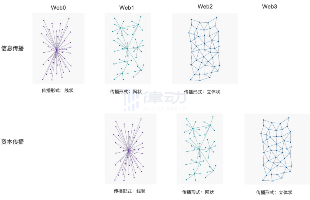 当然,我需要强调的是,web3 和 web2 不分优劣,我从来不觉得 web3 就高人一等,正如迄今为止整个社会的大部分财富依旧掌握在 web1 甚至 web0 的人手中。web3 发轫于 web2,就如同区块链技术发轫于互联网技术。正是因为 web2 对信息传播方式的全面革新,出现了大量社交媒体,在这个人人自媒体可以独树一帜,影响成千上万人而不用诉诸于某个官方媒体的时代,web3 的资本效用才能随着 KOL 甚至是朋友圈的信息渠道实现快速传递,从而汇集到一个 web3 的项目之上。