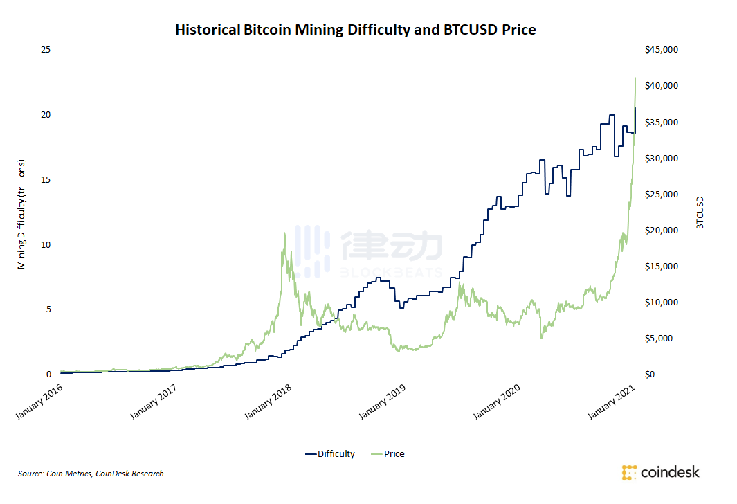 区块难度是工作量证明挖矿中最重要的内容之一,它由网络哈希率得出,用于确定矿工能够验证区块的速度。