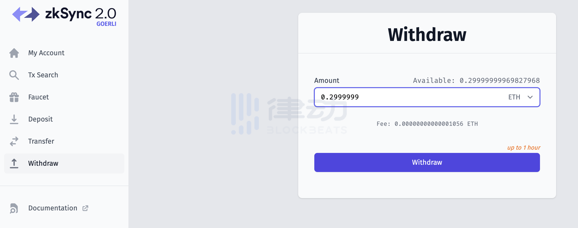 如果想要把 ETH 转移回 Layer 1 测试网,可以选择「Withdraw」选项,然后完成操作。