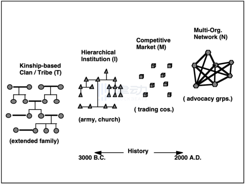 DAO 是一种真正的范式转变,因为新兴的创新触及了人类组织的基本组成部分。从等级式命令、控制结构(目前基本上从国家到公司的所有现代组织都不同程度的采用了这种结构),到异构的、自组织的网络。