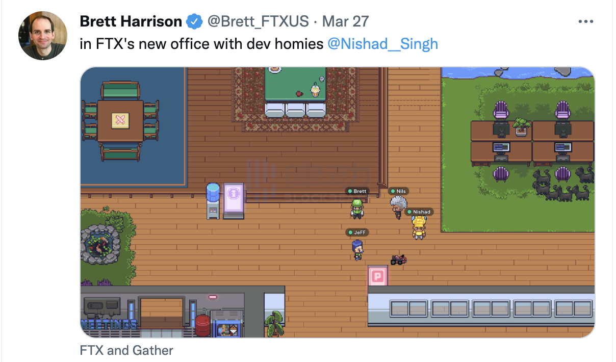 FTX .US 董事长 Brett Harrison 昨日发文表示在 Gather 建设了一个线上办公室,方便进行工作沟通。还有许多其他的 Web 3 从业者也开始探索使用 Gather 开会,使会议变得更加有趣。我们期望未来可以在元宇宙中承载工作与生活,Gather 用我们熟悉的电子游戏画风,在现实世界与元宇宙之间建起了一座桥梁,那么 Gather 到底有什么魅力可以吸引这么多人使用呢?