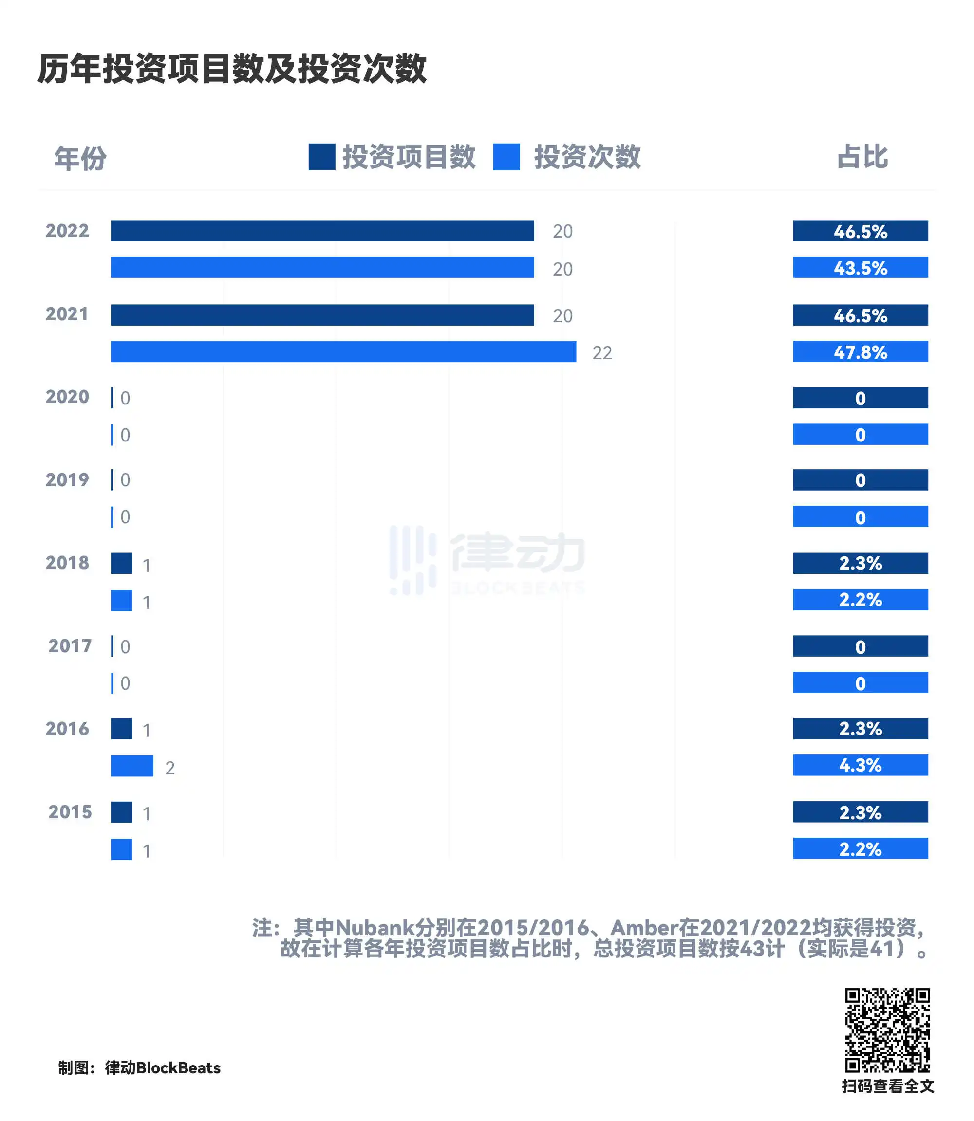 不过有趣的是,Tiger Global 虽然很早就涉足到 Crypto,最早可追溯至 2015 年,其领投了对巴西大型数字银行 Nubank 的 B 轮融资;但在 2018 年领投 Coinbase 的 E 轮融资后,就鲜有再对加密项目的投资,仿佛在刻意避免再次涉足该领域。