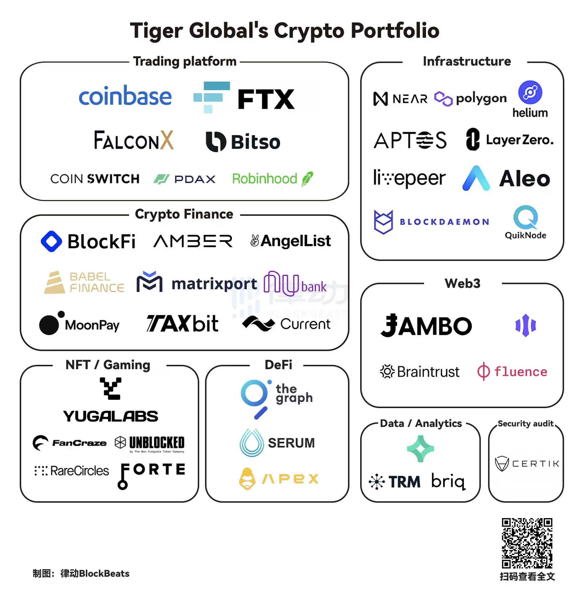 由于 Tiger Global 在 Crypto 里的投资交易主要发生在 2021、2022 年,下面律动 BlockBeats 将帮大家逐步还原它这两年的投资进展、投资偏好。