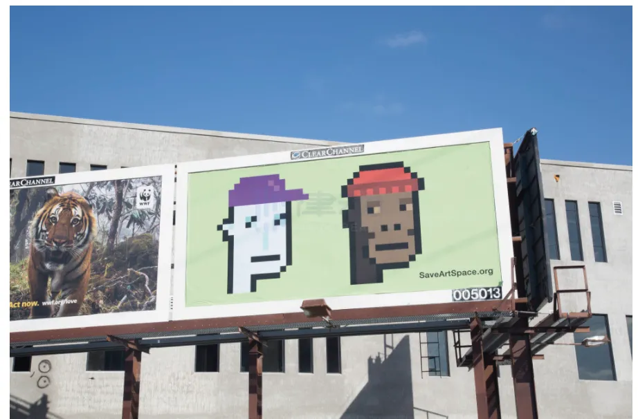 SaveArtSpace 公告牌展示了两个 CryptoPunk NFTs. 图片来源: Christie's