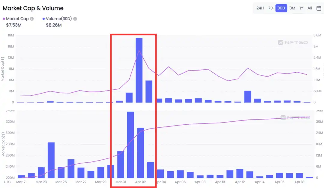 再如本次 Moonbirds,仍是知名项目 PROOF Collective 的增发项目,在 NFT 赋能、团队甚至合约代码上都延续了 PROOF Collective 的路径,所以 Moonbirds 同样反哺了 PROOF Collective 的市值。