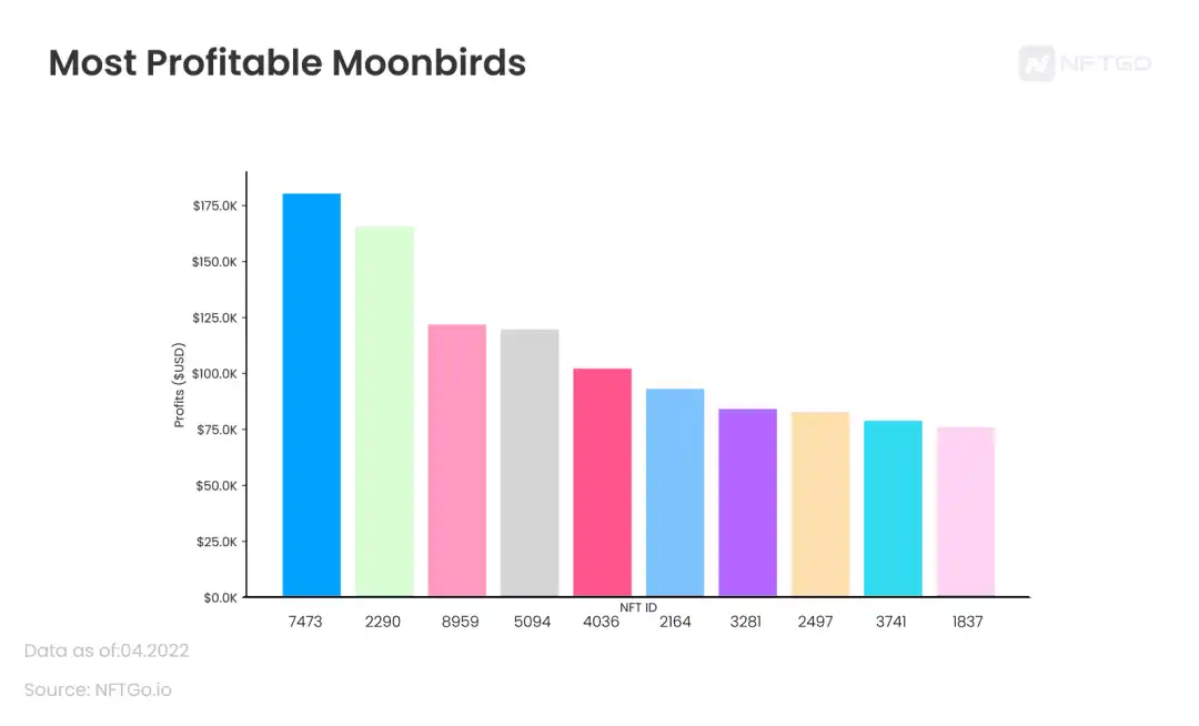 盈利最高的前十个 Moonbirds;
