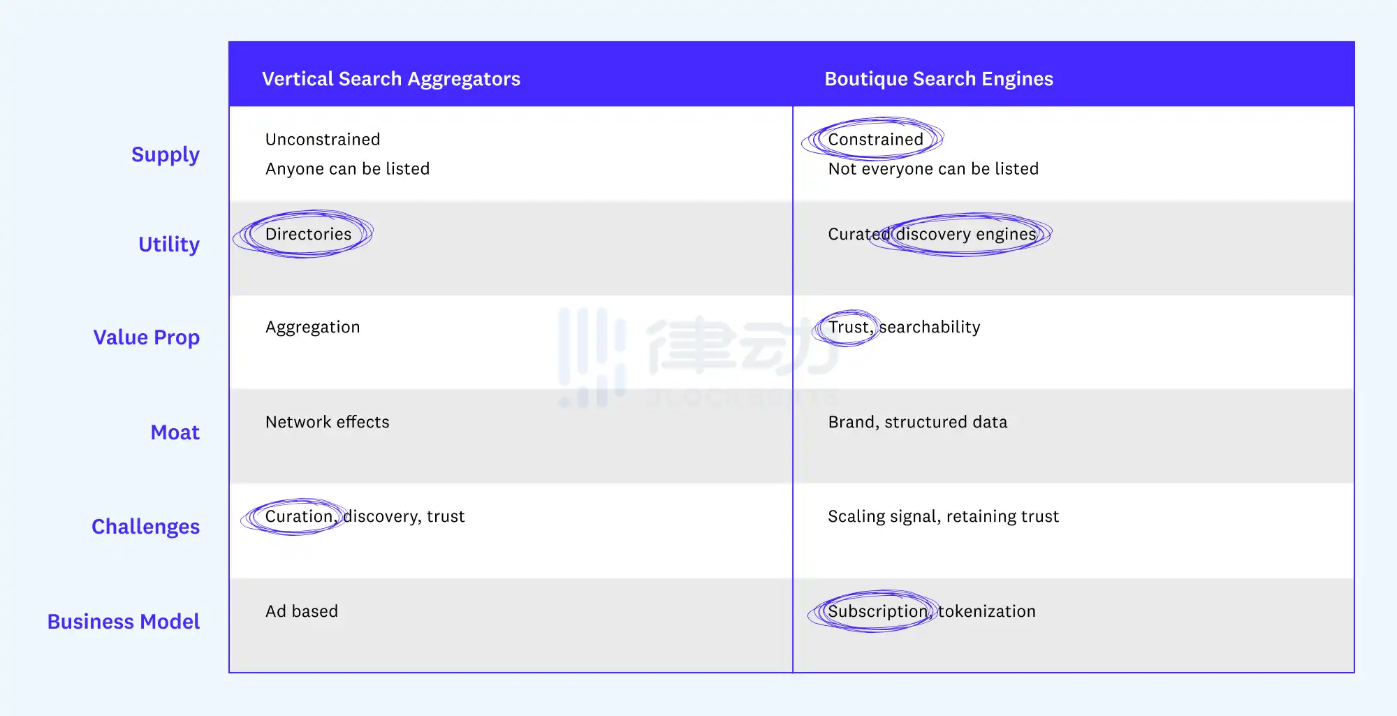 与垂直搜索聚合器不同,精品搜索引擎感觉不像是黄页,而更像是给朋友发短信求推荐。它们限制了供应,这是它们最大的护城河的基础:信任。重要的是,精品搜索引擎还引入了不依赖广告的新商业模式。