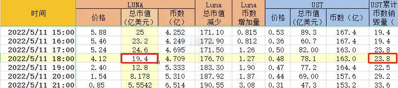 所以,UST 信用破产的时间点是:UST 总市值接近、甚至超过 Luna 时。