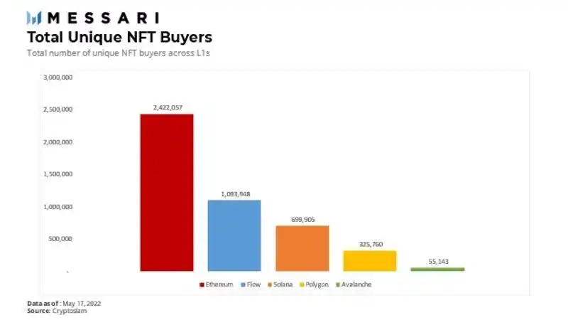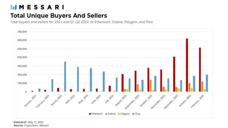 Flow 争取和其它链竞争的努力不容忽视,尤其是在 NFT 和 Web3 游戏赛道。得益于 Flow 链本身的性能,加上高质量的合作伙伴,Flow 在 2021 年的表现明显优于其它 L1 链。