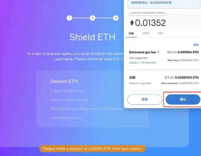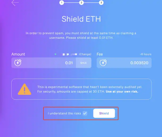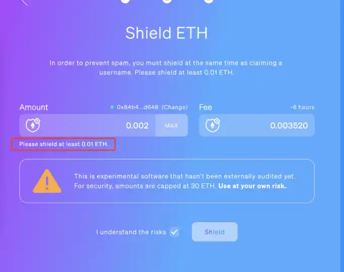 账户创建成功后,注意至少要 Shield 0.01 ETH。