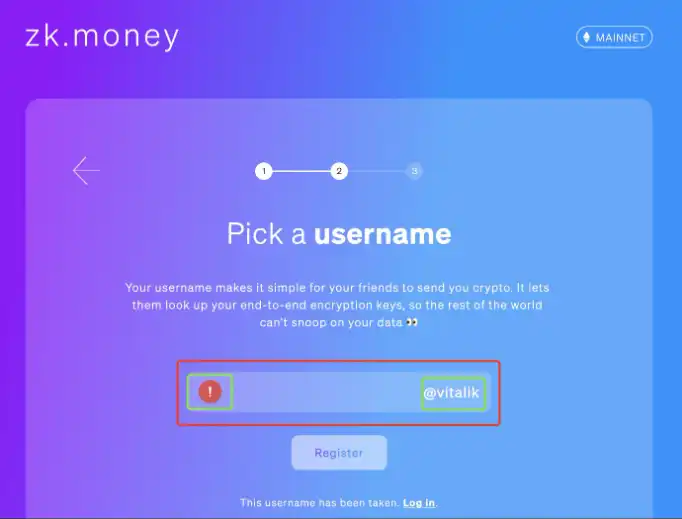 这里注意,如果你输入用户名后显示红色感叹号,说明这个名字已经被人注册了。你需要换一个名字。