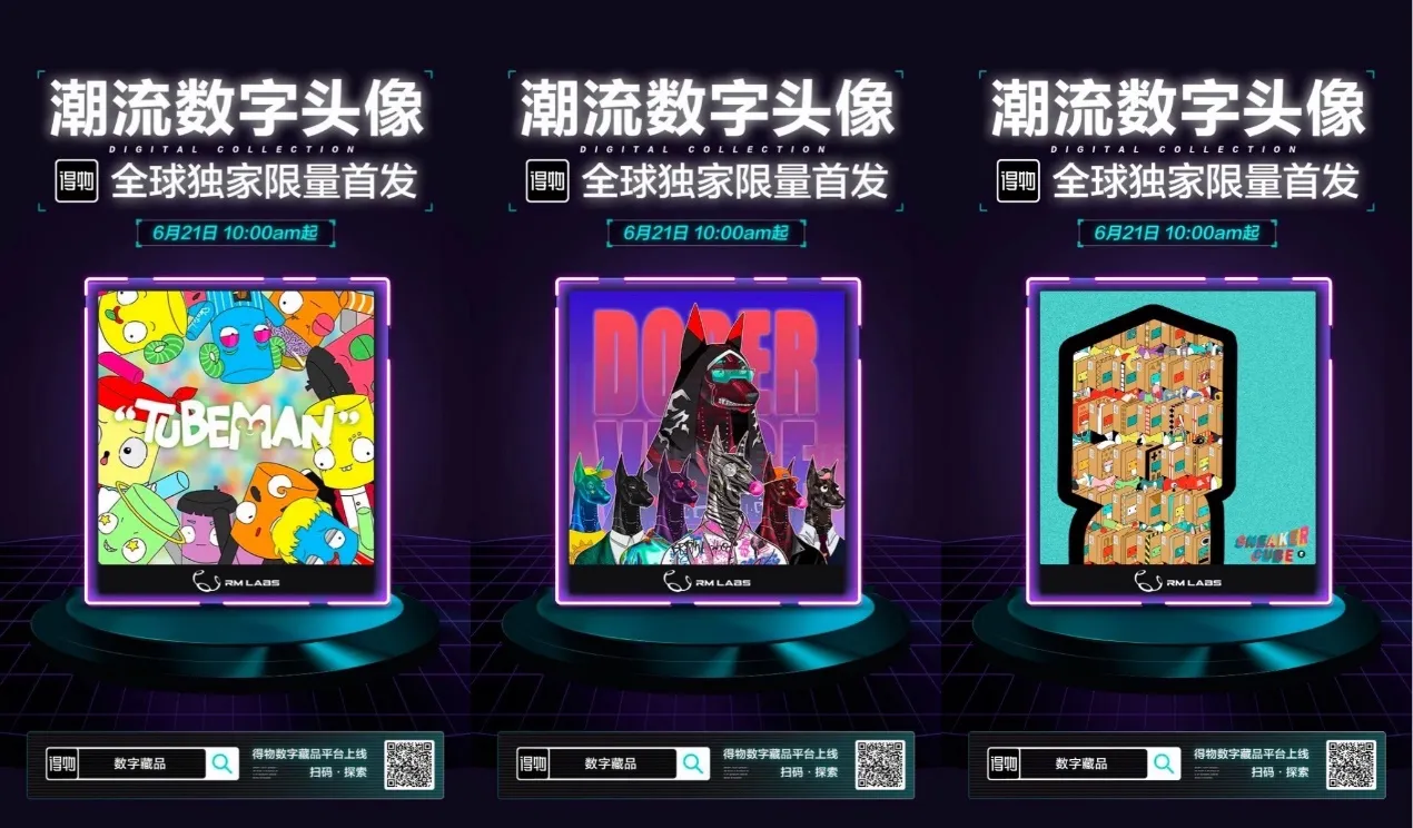 专属于年轻人的潮流数字头像来了。今日,得物 App 数字藏品平台正式上线,首轮发行三个系列潮流数字头像,限量发行 2300 个,其中 1800 个面向用户公开发售,其余 500 个由发行方和平台方预留。此次发售藏品的纪念和收藏价值,不仅在于每个潮流数字头像都有可溯源的独特编号,且每一款都结合了年轻人的兴趣、喜好、语言而有独一无二的潮流艺术设计,让年轻人鲜明表达「个性」。据悉,三个系列潮流数字头像将于 6 月 21 日 10 点起,向得物 App 所有用户开放抽签,每个系列每个用户账号限抽签 1 次。