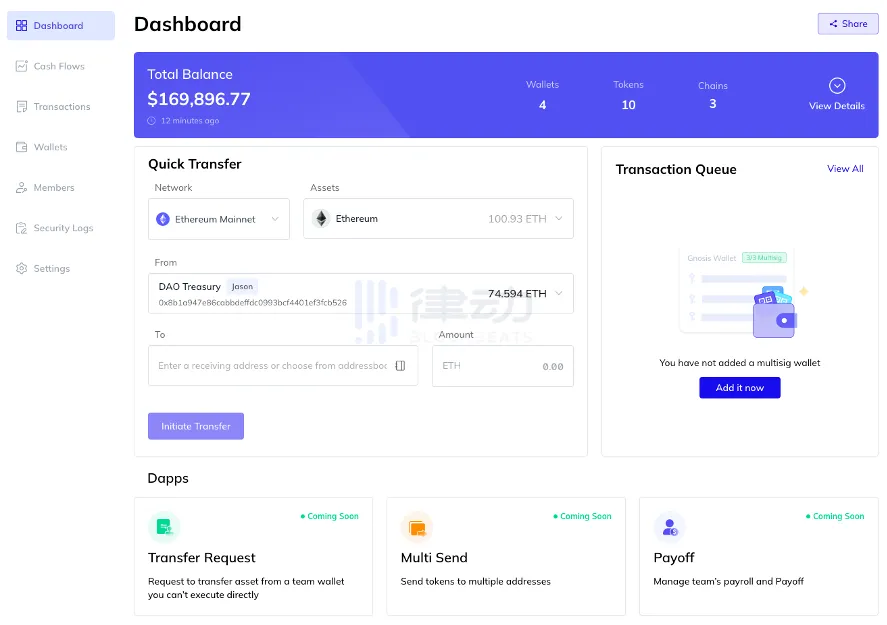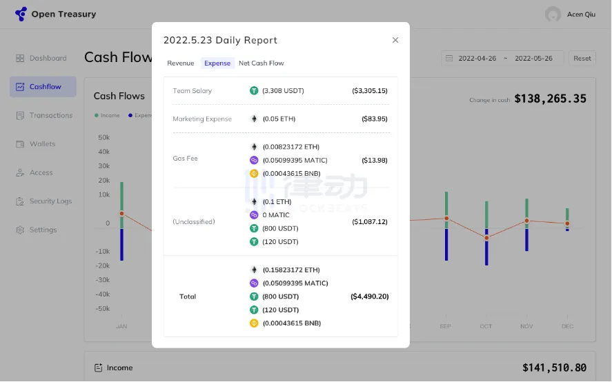 管理资产对许多 Web3.0 团队来说都是一个很头疼的问题,他们的资产大都跨越几个公链生态,交易操作涉及智能合约收款、广告运营、薪酬发放等多个方面。Open Treasury 解决的问题就是把项目分布在多个钱包和公链上的资产分门别类地整合在一起,从各个层面帮助它们管理财务操作,并生成实时且详细的财务报表。