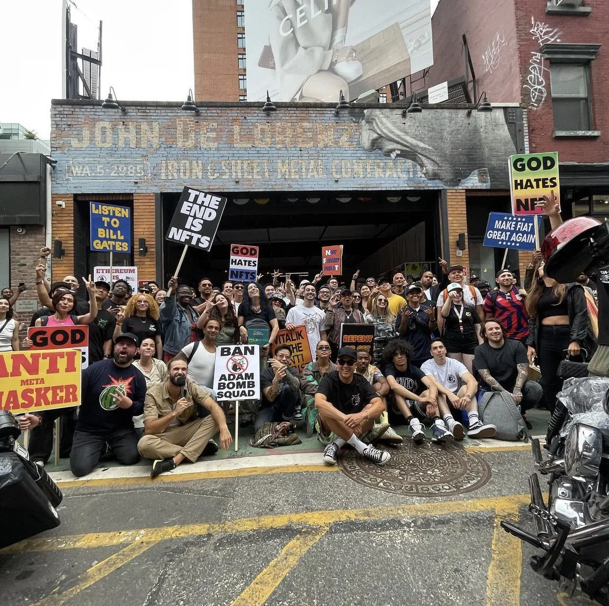6 月 20 日当天 NFT.NYC 会场外抗议的人群