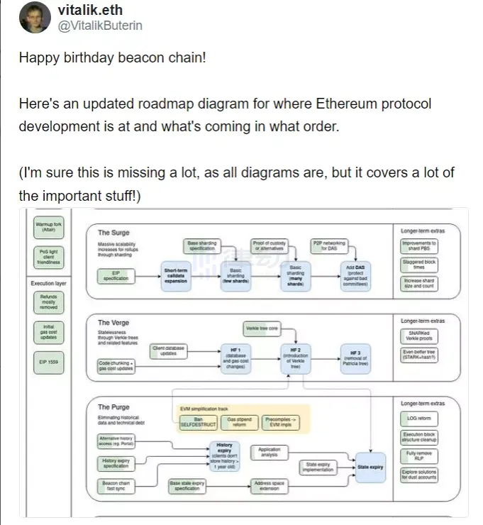还值得注意的是,zkEVM 的未来可能会更加光明。因为在今年晚些时候,以太坊备受期待的 Merge 就会进行更新,但这并不是路线图的终点。在 Merge 之后,以太坊将会迎来 The Surge,并通过引进分片技术,为 Rollup 的可扩展性带来更大改进。