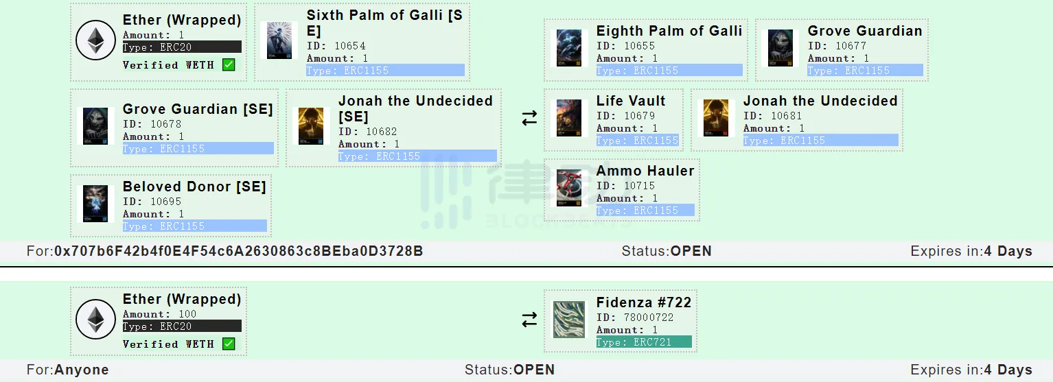 目前主流的 NFT 交易所如 OpenSea、X2Y2、LooksRare 都是采用订单簿模式来交易:卖家将自己的 NFT 挂单在交易平台上,买家在浏览市场上的挂单后选择性买入;买家提前对一个 NFT 系列挂出报价 offer,卖家选择性接受 offer。