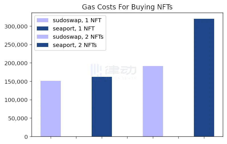 与 seaport 对比,sudoswap 在交易 NFT 时 Gas Fee 更低