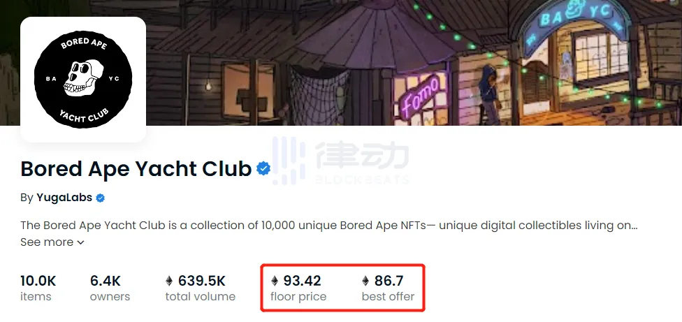 而实际上再仔细比较,可以发现 sudoswap 上的地板价比 OpenSea 高 0.011 ETH。这在上文中也讲过,sudoswap 名气小,OpenSea 作为稳坐头把交椅的 NFT 交易市场有着极强的品牌效应,大部分交易者在交易 NFT 第一选择都是 OpenSea,因而造成了这种「赢者通吃」的局面。