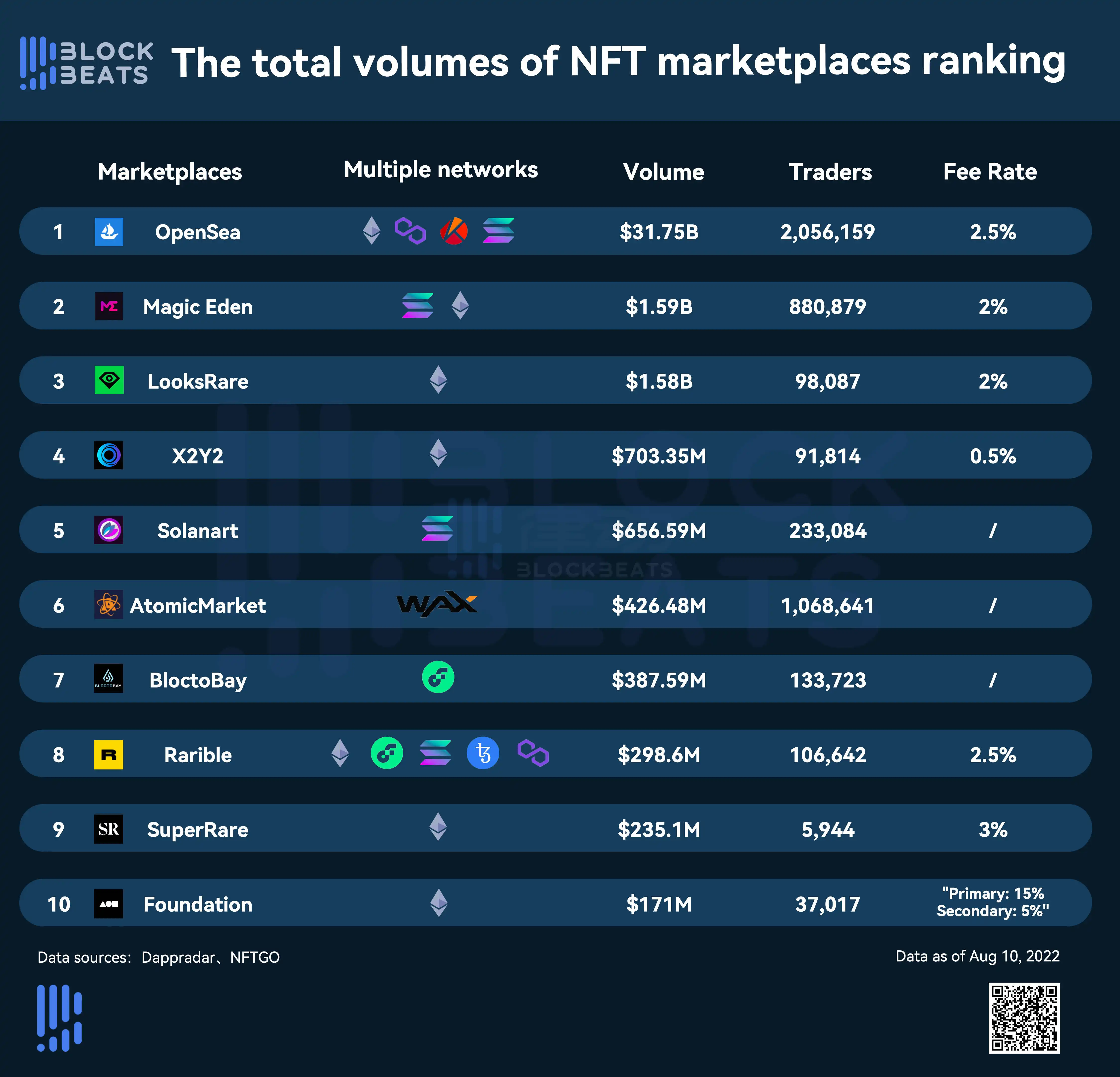 对此,OpenSea 后来也开始作出调整,于今年 4 月正式上线了基于 Solana 发行的 NFT,以 SOL 计价。并且到了 7 月,OpenSea 还宣布正式启动「Solana Launchpad」。此后,创作者可通过 OpenSea 获得 NFT Mint 的托管服务,以及帮助创作者指引 NFT Mint 之前的所有活动、社区、支持者的白名单,和所有 Mint NFT 之后的其他活动以及二次销售服务等。