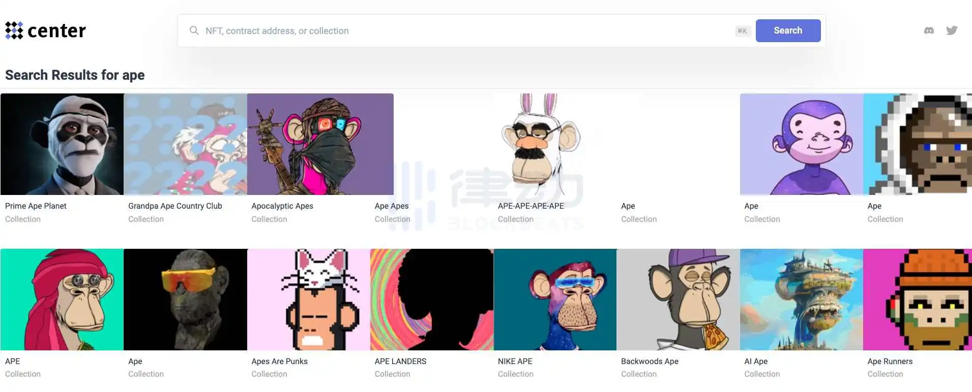 例:搜索 ape,显示所有 Ape 相关 NFT