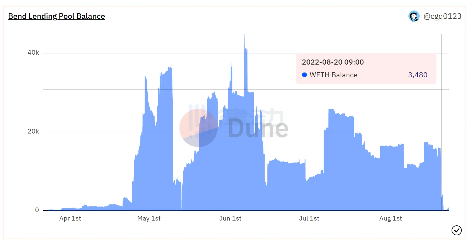 BendDAO 的借贷池余额(图源:Dune)
