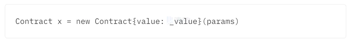 其中 Contract 是要创建的合约名,x 是合约对象(地址),如果构造函数是 payable,可以创建时转入_value 数量的 ETH,params 是新合约构造函数的参数。