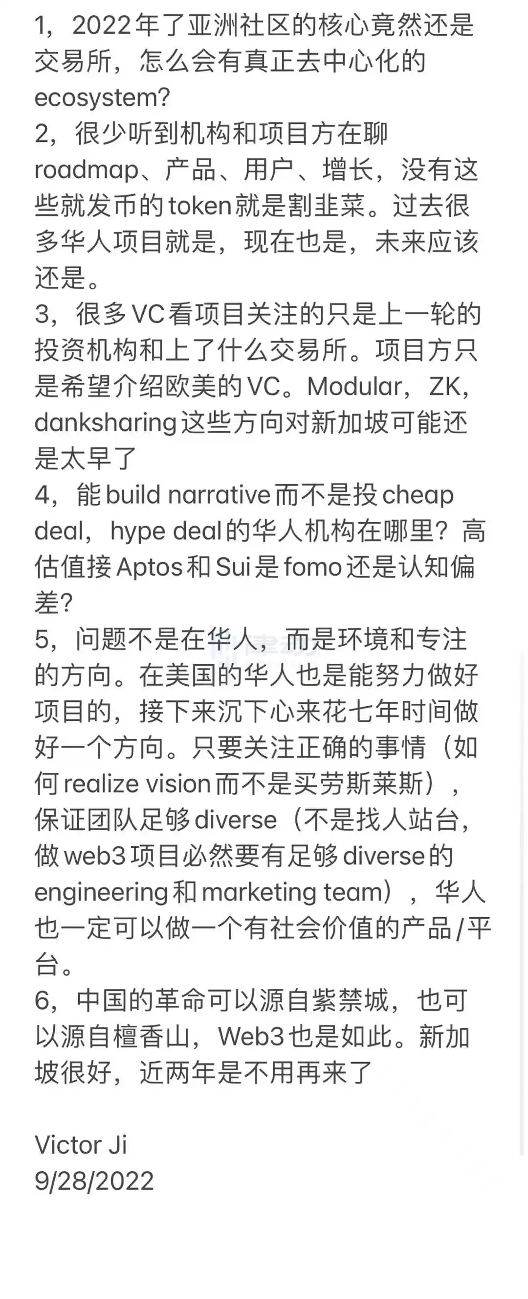 5,问题不是在华人,而是环境和专注的方向。在美国的华人也是能努力做好项目的,接下来沉下心来花七年时间做好一个方向。只要关注正确的事情(如何 realize vision 而不是买劳斯莱斯) 保证团队足够 diverse(不是找人站台,做 web3 项目必然要有足够 diverse 的 engineering #l marketing team) 华人也一定可以做一个有社会价值的产品/平台。