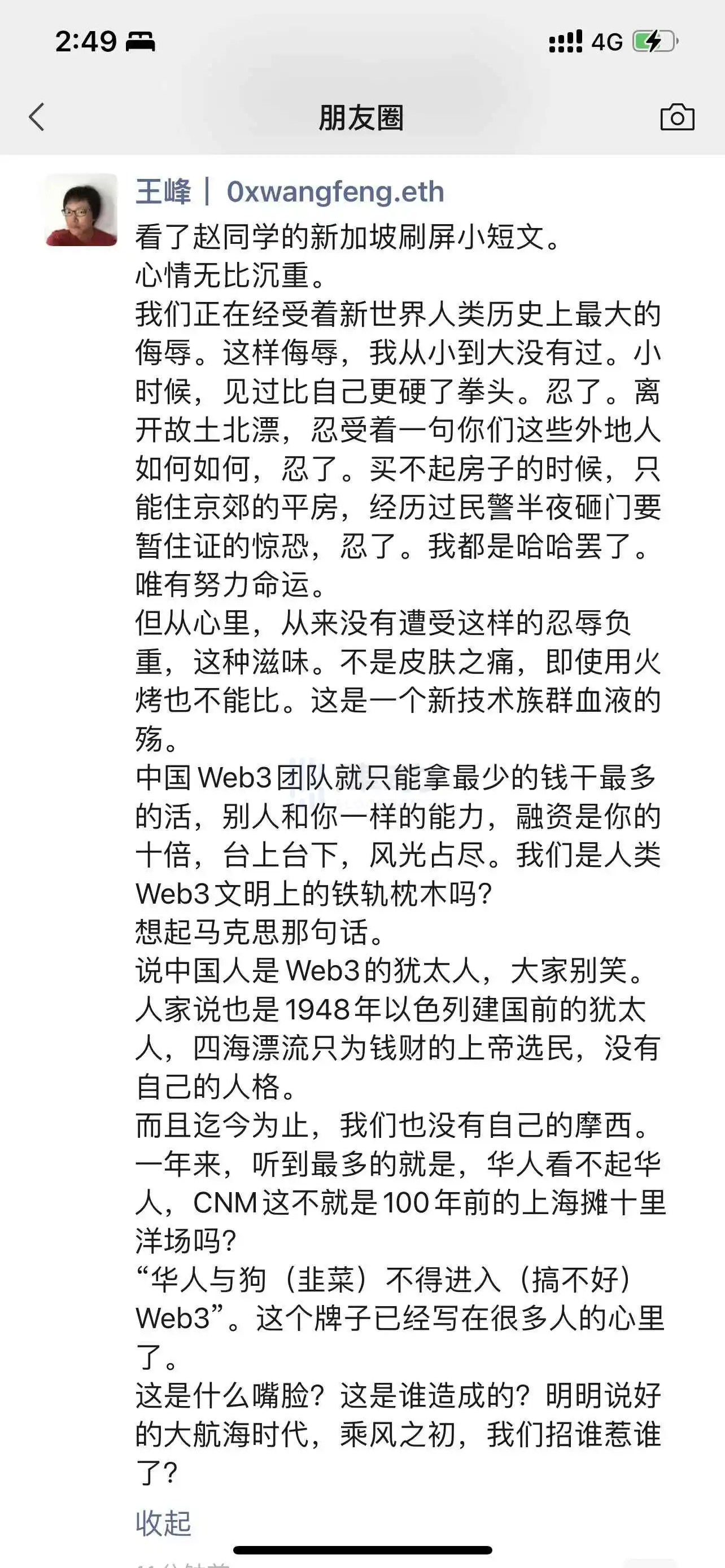 「华人与狗(韭菜)不得进入(搞不好)Web3」。这个牌子已经写在很多人的心里了。这是什么嘴脸?这是谁造成的?明明说好的大航海时代,乘风之初,我们招谁惹谁了?