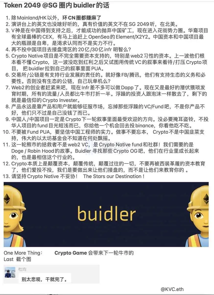 随着《Token 2049 Takeaways》一篇随笔在社区传开后,大家纷纷发表自己对 Web3 按捺许久,却一直不敢诉说的心声。关于国内 Web3 未来的讨论炸开了锅: