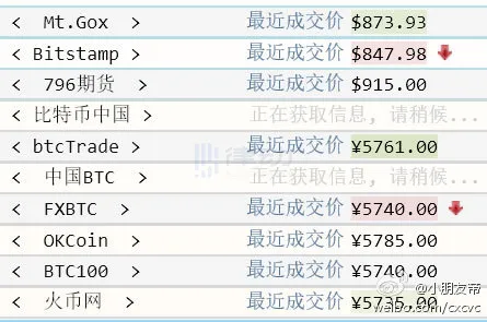2013 年几大交易平台突发行情界面(图源:微博用户小朋友帝)