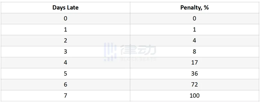 对应公式中「t」。「锁定期」越长,能够获取的「XEN」份额越大。铸造「XEN」时,将提示需要设置「锁定期」(mintTerm),目前可以设置的最短「锁定期」为 1 天,最长为 360 天。随着用户数量的增多,最长「锁定期」将根据公式上调,直至上限 550 天。