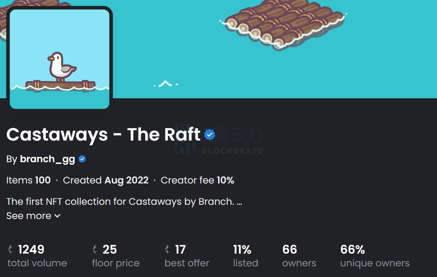可能,您已经听说过 Castaways,从地板价已经 25 ETH 的「木筏」: