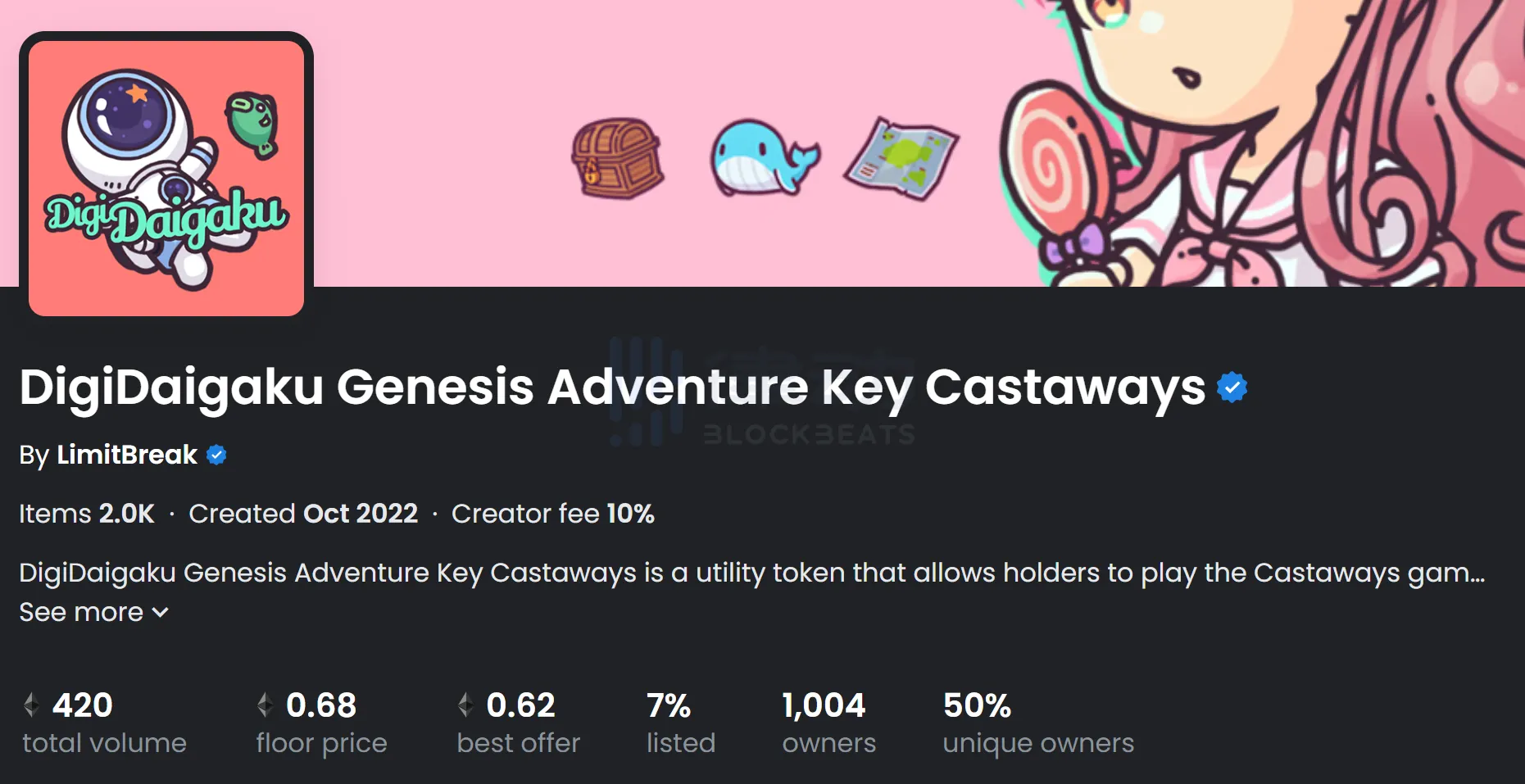 3. 购买「DigiDaigaku X Castaways 冒险之匙」,参与之后的独家游戏活动并在活动中名列前茅。(注:该信息仍未正式公告,但在官方的周常 AMA 中被创始人提及)